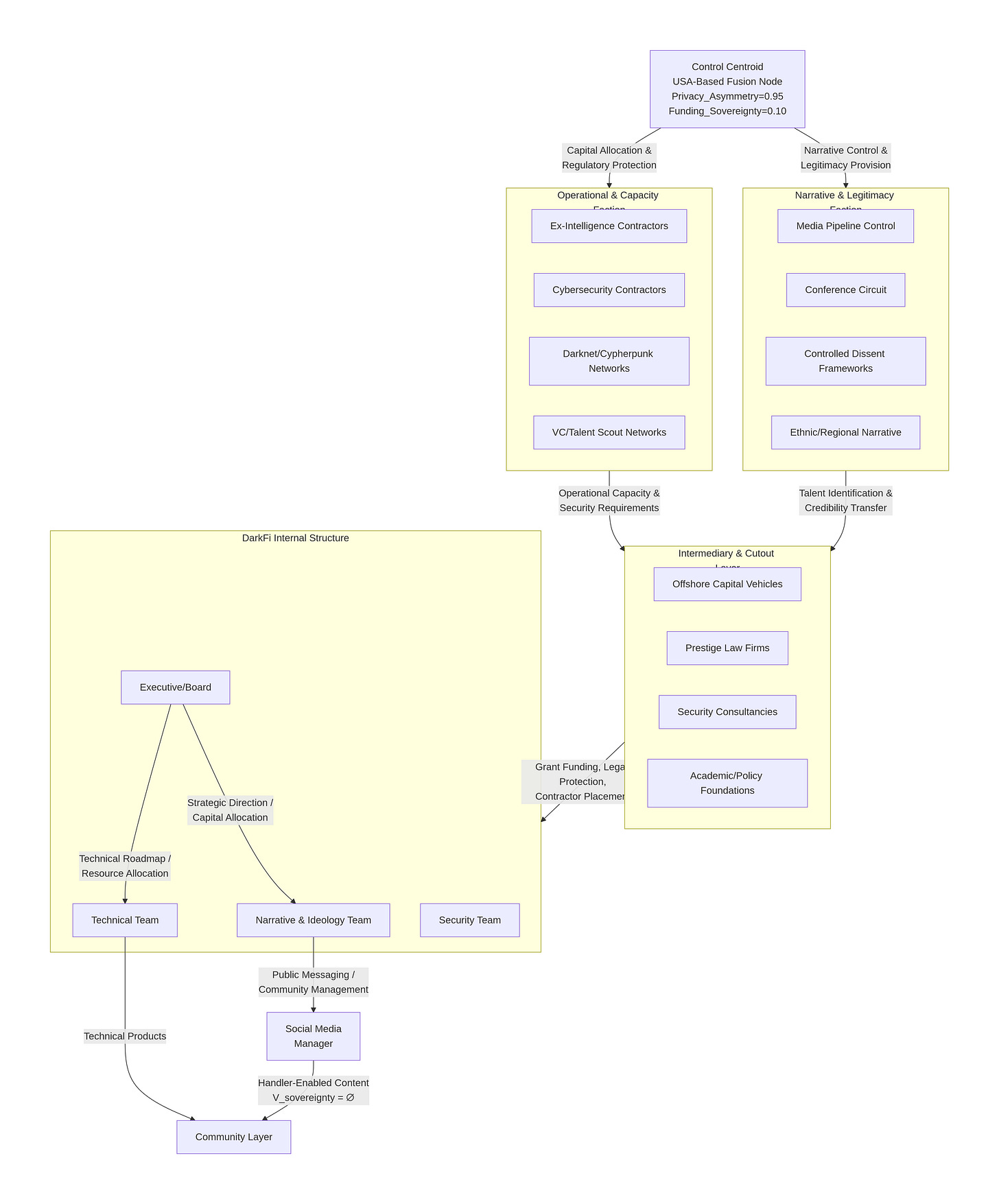 CC[”Control Centroid<br/>USA-Based Fusion Node<br/>Privacy_Asymmetry=0.95<br/>Funding_Sovereignty=0.10”]