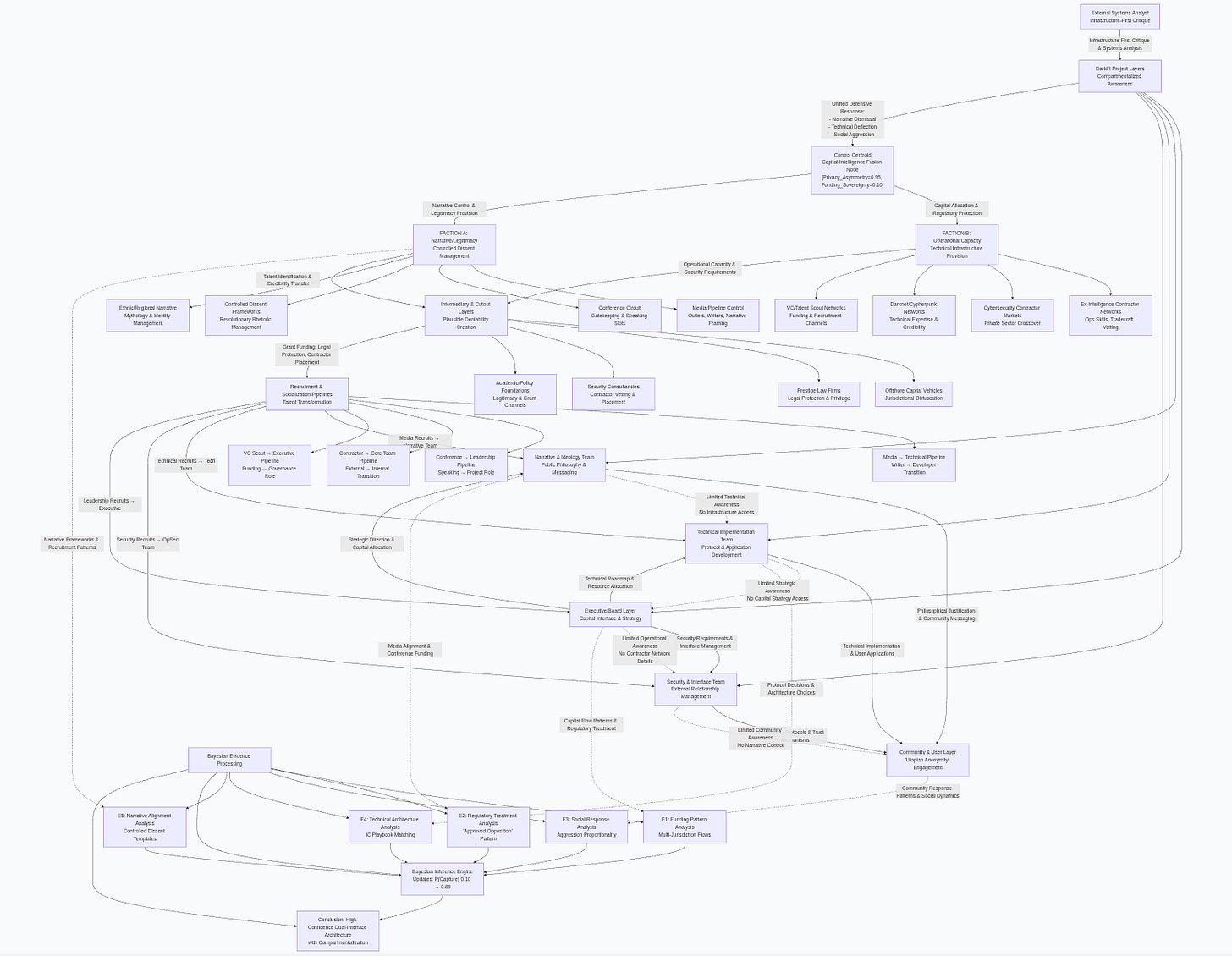 DarkFi appears to be a centrally controlled operation with venture capital and intelligence community integration, using decentralized/crypto rhetoric as narrative cover. The community layer functions more as a release valve/feedback mechanism than a governance structure, with sophisticated suppression of dissent built into the communication pathways.
