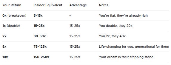 Your 100x dream is their 500x reality - structurally impossible for you to win big