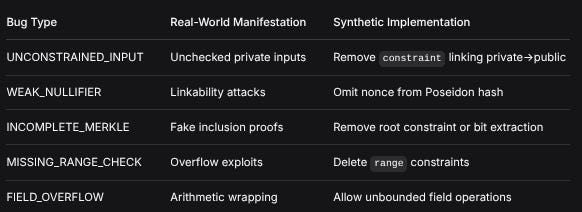 Key Insight: By training on carefully constructed synthetic data that captures the essence of real zk-circuit bugs, the model learns transferable patterns applicable to real-world DarkFi zkas code, despite never seeing production circuits during training.